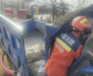 车头变形两人被困!渭南一农用三轮车撞上景观石