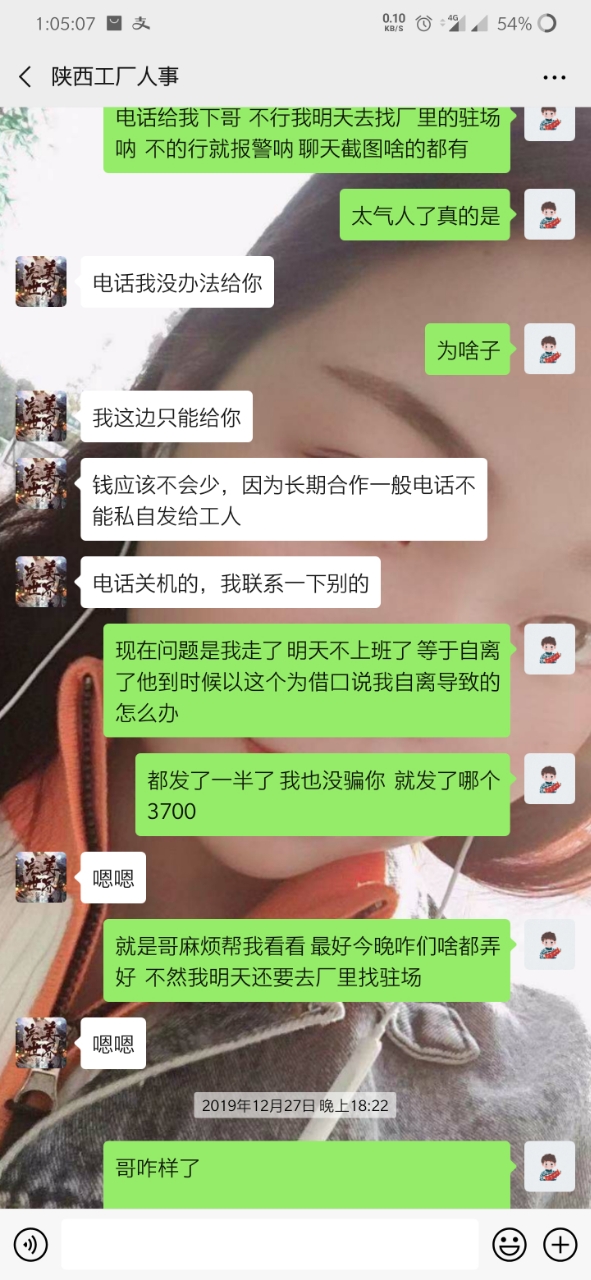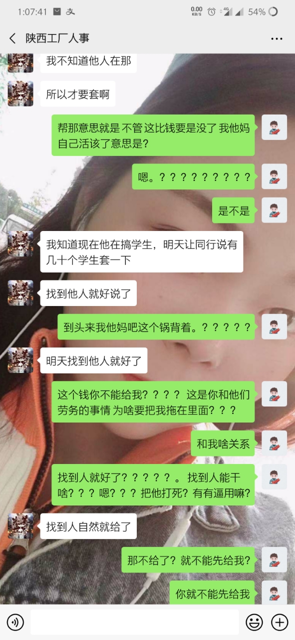 这是和中介口中的哪个劳务的聊天记录   这个所谓的劳务也很有可能就是哪个中介骗子的另外一个号