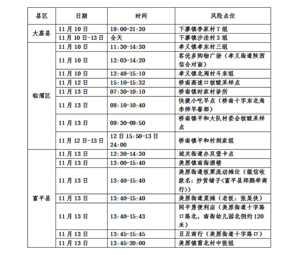 根据渭南市应对新型冠状病毒感染肺炎疫情工作领导小组办公室(流调工作专班)流行病学调查,现将我市新增阳性感染者风险点位(活动轨迹)公布如下: