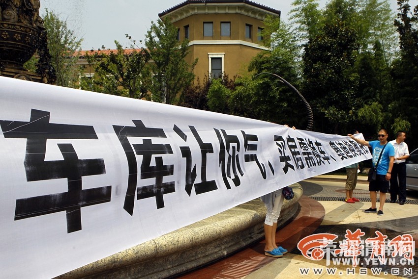 数次交涉无果,愤怒的业主在售楼部门前打出横幅抗议