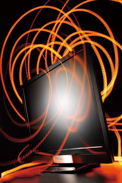 小光圈和商品摄影另一个密不可分的关系,就是慢速快门的实现,例如拍摄投影机投影的情境、键盘的背光效果,或其他本身就是发光体的物品,这些都必须依赖慢速快门才能呈现,如果单以棚灯或闪灯的瞬间光源来拍摄,反而会显现不出应当呈现的重点,甚至还会破坏商品原有的质感。另外,3C 产品常常会需要将一些闪烁的灯号表现出来,要准确抓到灯号闪烁的瞬间,可能尝试了几十次的快门还不一定会成功,这时不妨改变拍摄方式,缩光圈并放慢快门速度,就跟拍摄闪电一样,藉由慢速快门让瞬间光源刻划于影像之中。