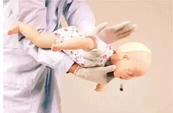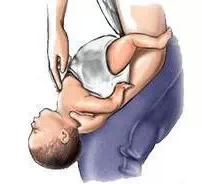 可以采取另外一个姿势,把孩子翻过来,躺在坚硬的地面或床板上,抢救者跪下或立于其足侧,或取坐位,并使患儿骑在抢救者的大腿上,面朝前。抢救者以两手的中指或食指,放在患儿胸廓下和脐上的腹部,快速向上重击压迫,但要很轻柔。重复,直至异物排出。