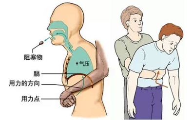 海姆立克急救法的原理:利用冲击腹部--膈肌下软组织,被突然的冲击,产生向上的压力,压迫两肺下部,从而驱使肺部残留空气形成一股气流。这股带有冲击性、方向性的长驱直入于气管的气流,就能将堵住气管、喉部的食物硬块等异物驱除,使人获救。