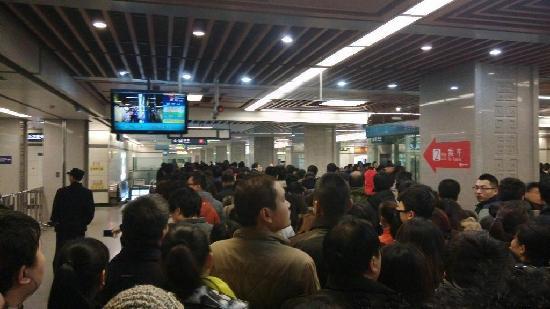 网友“Ray章”说,因为雪天人多,北大街地铁站流量控制,一次放一部分人。