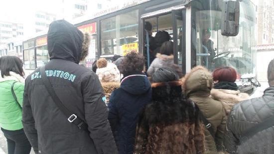 雪天出行惹麻烦,西安几百人奋力挤爆公交车。