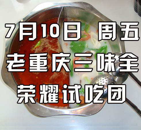 哦耶耶哦啦啦,上周五刚吃完马回斋火炉烤鱼,这周五试吃又来咯~~这周咱们去老重庆三味全火锅,级别不够的小伙伴得抓紧咯,后期荣耀福利将越来越多~~~荣耀的铁粉们肯定记得去年咱们也组织了一期老重庆三味全火锅的试吃,试吃后网友们反馈都很不错噢,而且还有些网友给小编反映,想去的结果因为人数有限没报上名~~所以呢,这周五咱继续老重庆三味全火锅试吃第二场,第一场没赶上的小伙伴这一期得抓紧咯~~~
