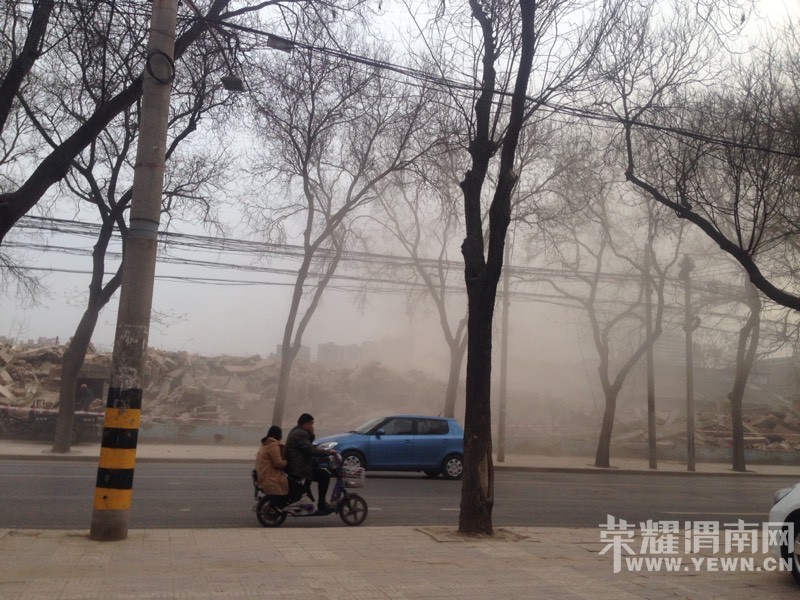 借用广厦对面拆迁,尘土飞扬不见五指的几张照片,看看拆迁时尘土飞扬的污染究竟有多么严重!