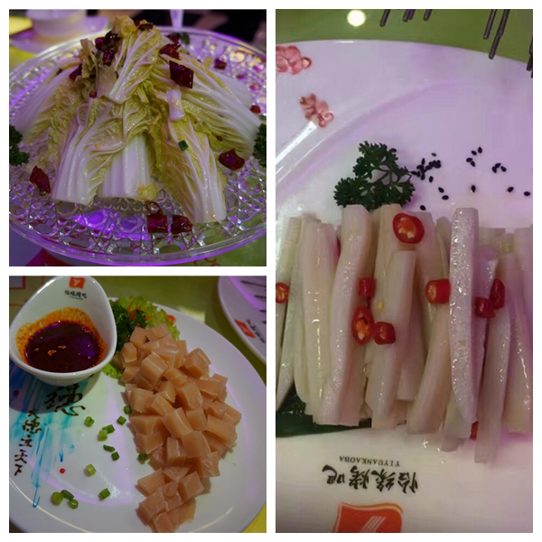 霸道姑姑菜(娃娃菜),麻辣爽口 渭南少见的素三文鱼,采用魔芋粉与面筋制成了鱼肉的口感 完全无油的香拌藕条,食材是新鲜的华县九孔莲,鲜爽无比 还有凉拌佛手瓜,酸出甜味的味道