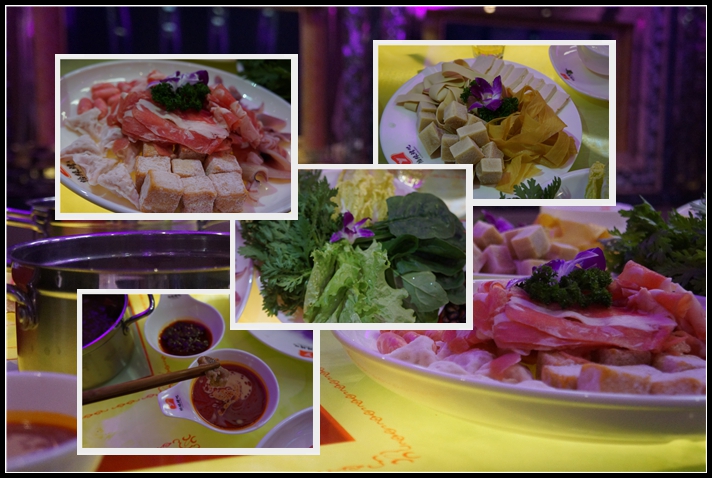 跟着笑容甜美的服务员妹子走进包厢 全套的KTV设施啊,唯一不同的是, 两张桌子上整齐的摆放着餐具,还有火锅店才有火锅桌。