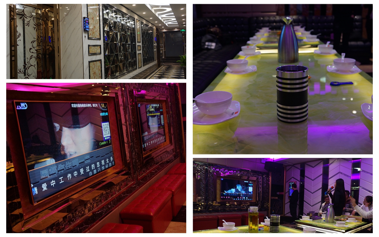 不是说好来吃饭吗?怎么进来了一家KTV? KTV的大厅,KTV的走廊,KTV的装潢,KTV的包厢 这显然就是一家装修豪华的KTV啊!