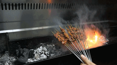 紧致的肉质,酥软的口感, 每一块兔肉都是用特色方法提前卤过, 先卤后烤,将卤香和碳烤的焦香完美结合