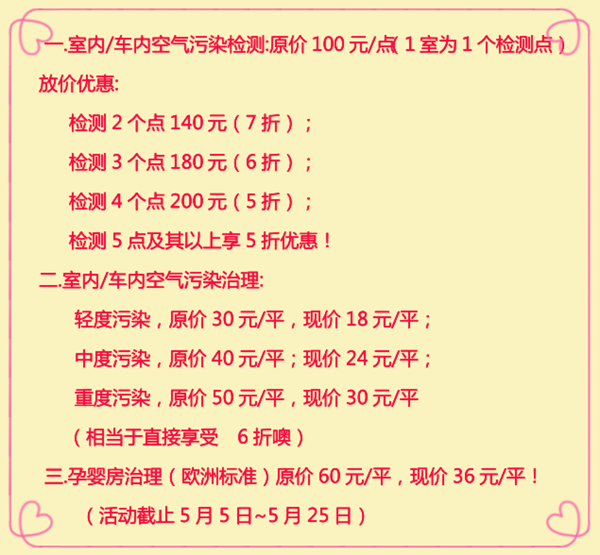 追童星的各位妈咪粉姐姐粉阿姨粉奶奶粉... 相信下面这位萌哒哒的小朋友你们绝对不陌生吧! 是的,他就是曾两度登上春晚的童星邓鸣贺, 因白血病复发,最终抢救无效去世,年仅8岁。 为什么近年来小孩的白血病愈演愈烈, 有些并不是遗传而是一些外界因素所导致的,比如说我们所熟悉的甲醛 半年内入住新装修房, 患病的几率会增加近5倍, 大家以为装修的新房搁置半年左右甲醛就会彻底挥发 其实不然有的挥发时间长达15年,最短也在3年左右 不要让甲醛剥夺了孩子的健康。 小编公司最近搬新家了,刚进门的时候味道特别大 老板为了员工身体状况着想斥巨资为我们请来了甲醛治理专家——欧洁源,效果一级棒! 现在小编每天都神清气爽的在工作,再也不怕讨厌的甲醛了 如果你家新装修了记得一定要清理甲醛哦~ 清理起来太贵?没关系我们来替您砍价 巨大的福利等着你!!!