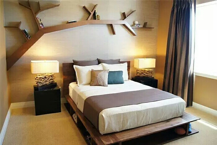 利用字母和梯子的隔空设计,中间可以填满书籍,或者添上一些小摆饰,顿时让房间的品味上升了几个层次。不要再为自己不想读书找理由,而应该是为读书创造机会,并提升空间布置的格调。