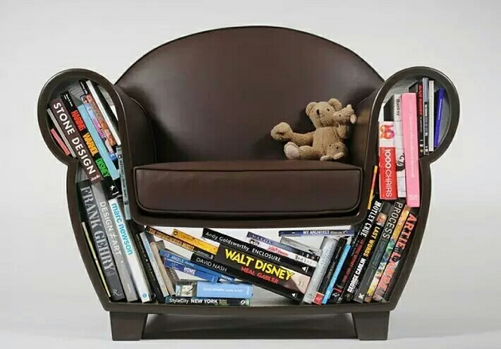 这样的沙发书架还是比较少见的,但是其创意却特别有趣。当整个身体都陷入沙发里时,随手就能拿到自己想要的书籍,不知觉中就提高了看书的机率。