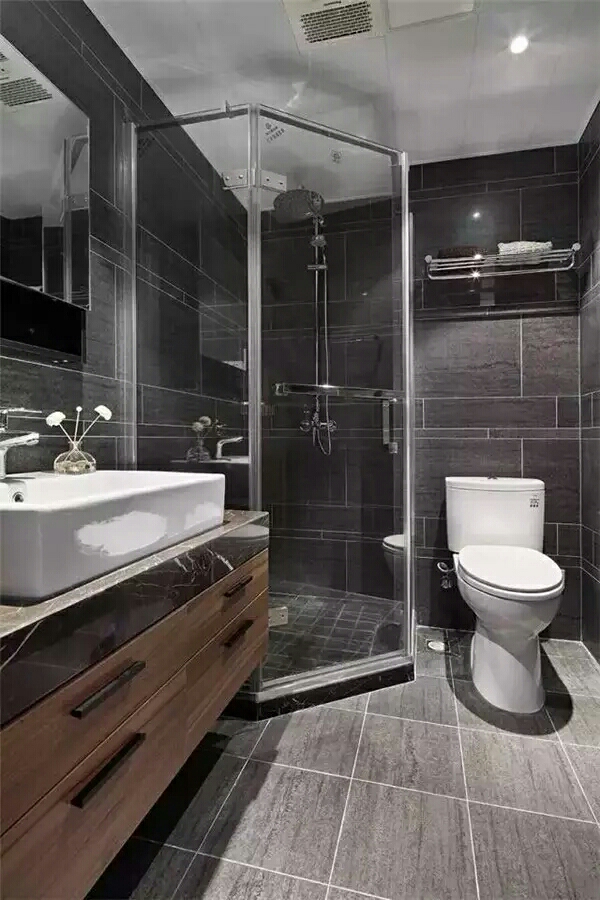 干湿分离包括淋浴区与坐便、面盆区的分离,或者浴室与洗手台的分离。通俗点来说,“干”就是指洗手台,“湿”是指浴室。