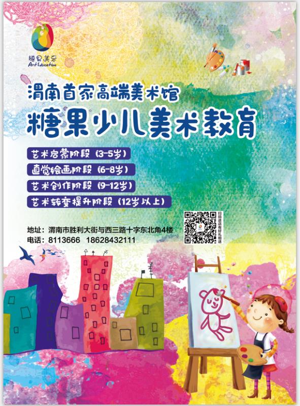 我想这样的天真 配合先进的教育理念、优秀的师资团队 糖果少儿美术教育倡导用美术教育引导儿童热爱生活、观察生活、欣赏生活,提升儿童的审美能力和创造能力,培养儿童的道德感和意志力,促进儿童心智和个性的健康成长。采用先进的教育理念和优秀的师资团队,以高端的艺术环境为基础,旨在通过举办儿童美术培训、展览儿童美术作品、组织策划儿童美术大赛等方式提供全面的美术教育服务。让每个孩子都能在艺术的氛围里,了解艺术、感受艺术和创作属于自己风格的绘画,自由创意联想,全面提升孩子的观察力、想象力、创造力和改变思维方式的能力。
