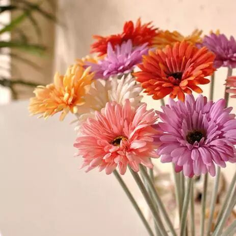 扶郎花(又名非洲菊) 菊科宿根草本,花径较大,花色丰富,四季常开。喜温暖、阳光充足和空气流通的环境,属半耐寒性花卉,喜肥沃疏松,富含腐殖质的沙质壤土。 这种植物不仅是吸收甲醛的好手,而且具有很强的观赏性,有不少品种更可用于切花花材。
