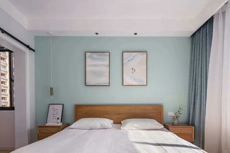 床头背景墙挂上两幅抽象派的装饰画,显得意韵十足。