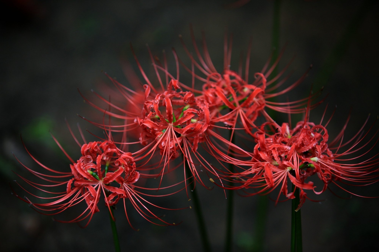 红色的彼岸花又称曼珠沙华(manjusaka),《法华经》中的四华(花)之一。原产于中国长江流域,分布在长江中下游及西南部分地区,相关记载最早见于唐代,被称作“无义草”、“龙爪花”。民间有许多关于“彼岸花”的传说。另有以《彼岸花》为名的歌曲和小说作品。