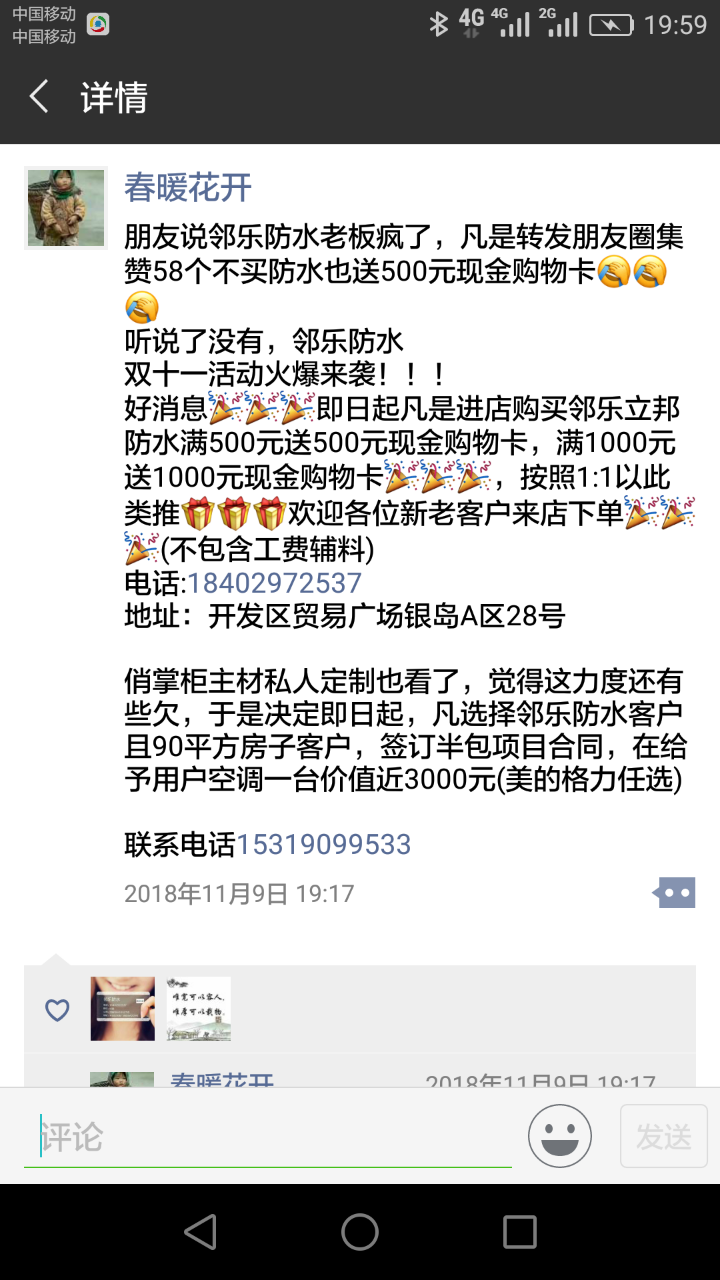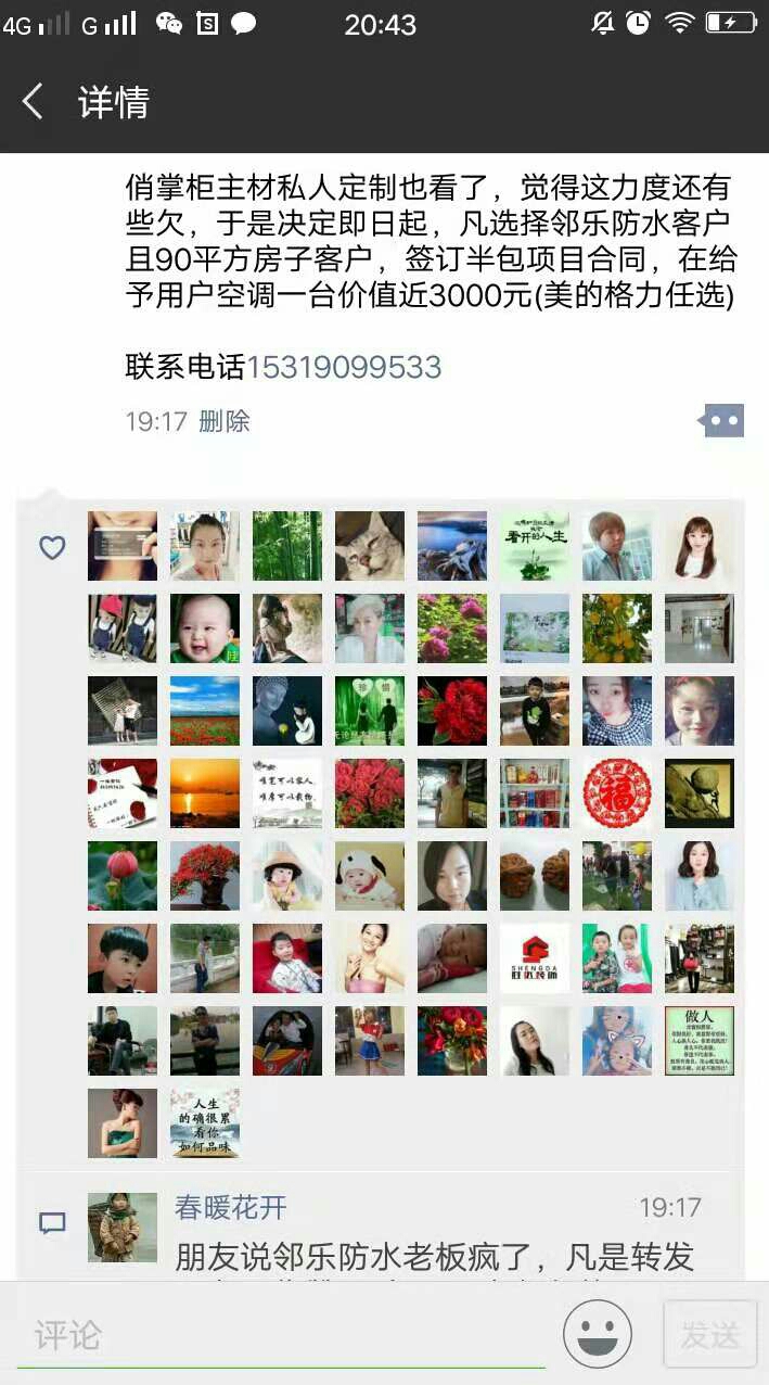 朋友说邻乐防水老板疯了,凡是转发朋友圈集赞58个不买防水也送500元现金购物卡[捂脸][捂脸][捂脸]
