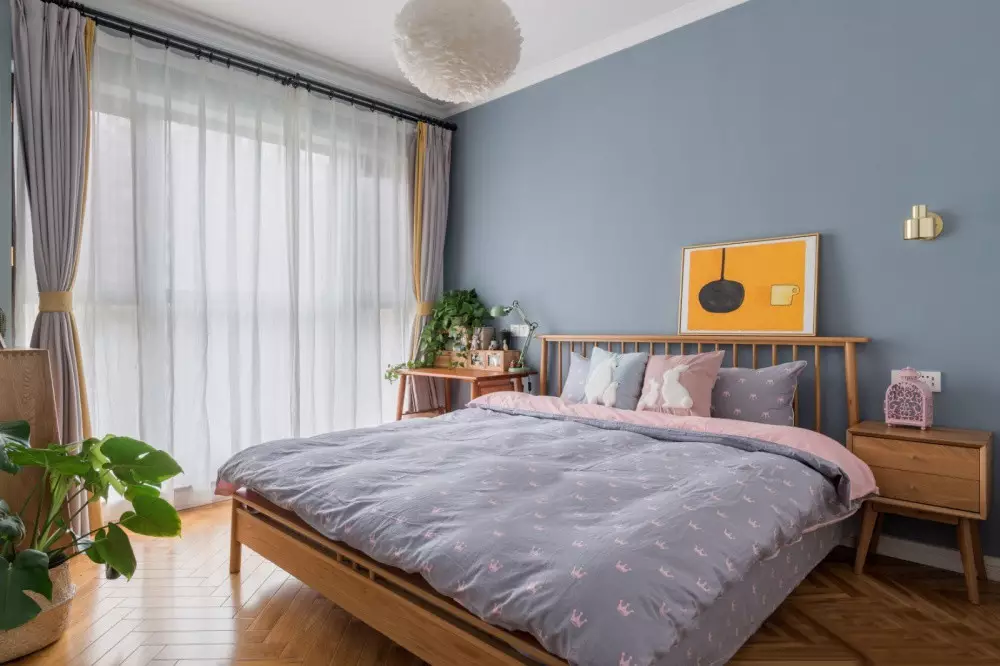 浅灰蓝为主调的卧室,让空间沉浸于宁静而舒缓的氛围中。