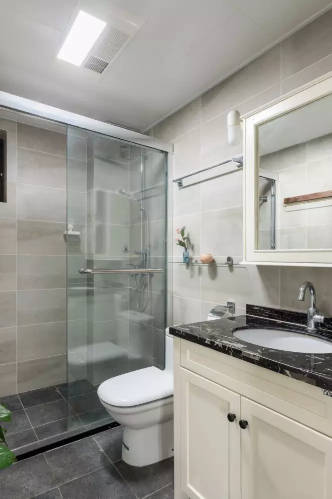 卫生间通过淋浴间的玻璃隔断进行干湿分离,有效防止了湿气散发。