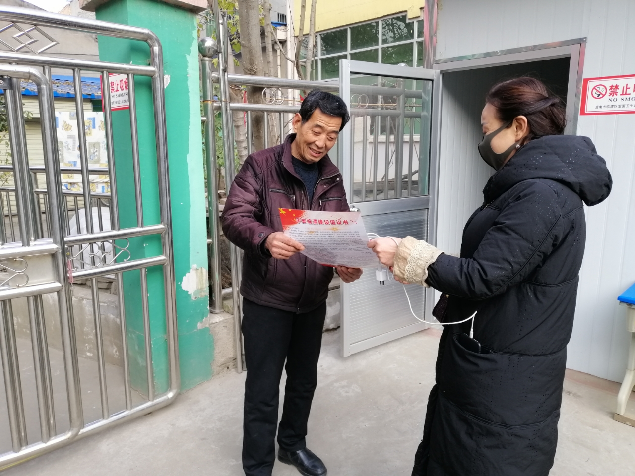社区工作人员与市乳品厂党员志愿者在城关粮所家属院开展扫黑除恶、平安建设、安全生产、居民医疗保险等宣传以及小喇叭宣讲活动。