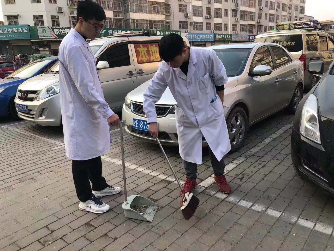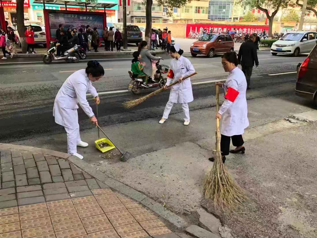 党建联合会单位:市第一医院党员志愿者清扫胜利大街主次干道。