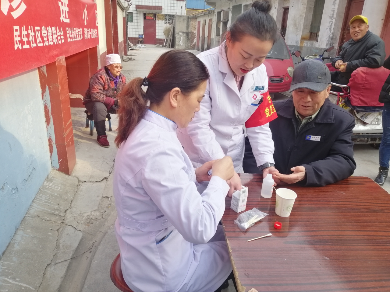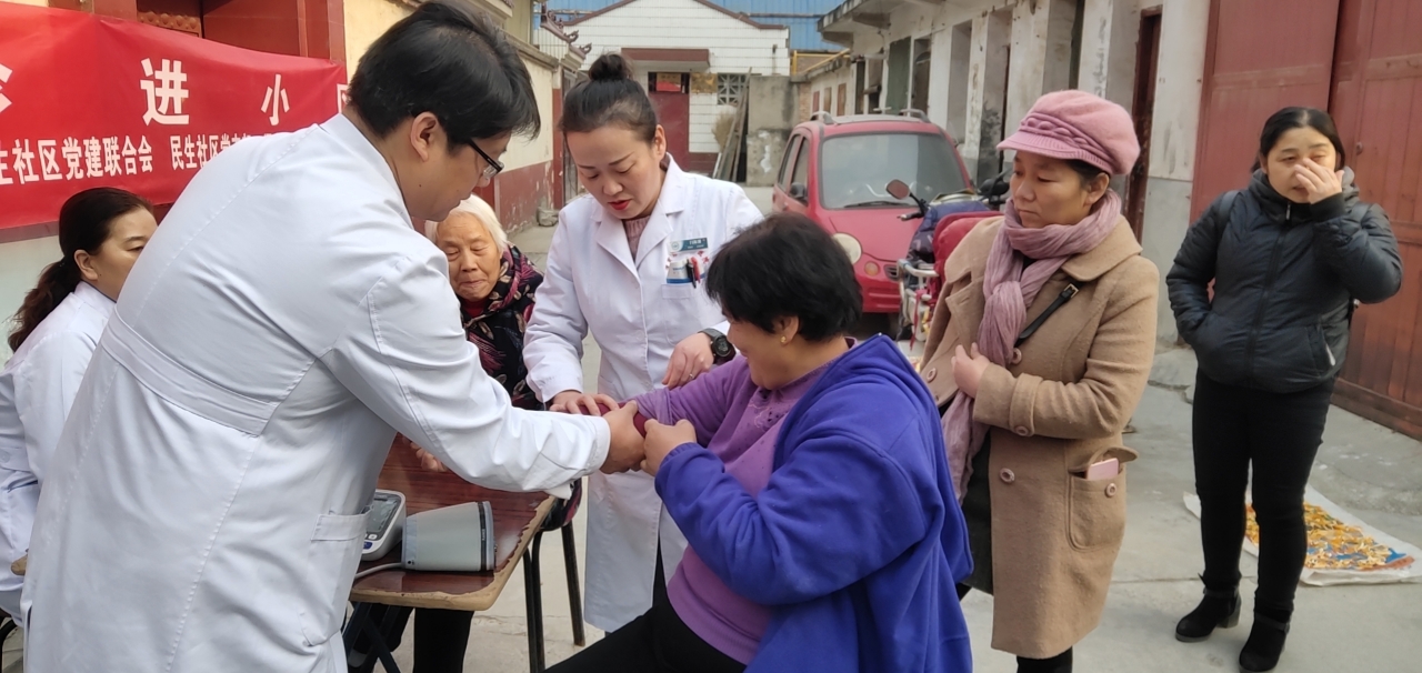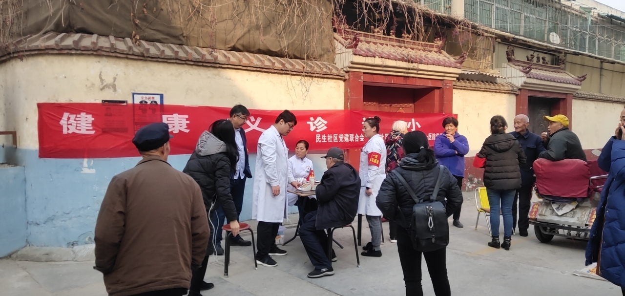 社区工作人员与党建联合会单位市一院党员志愿者开展“健康义诊进小区”活动。