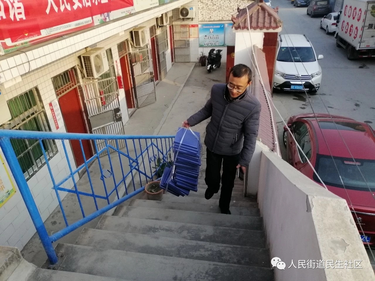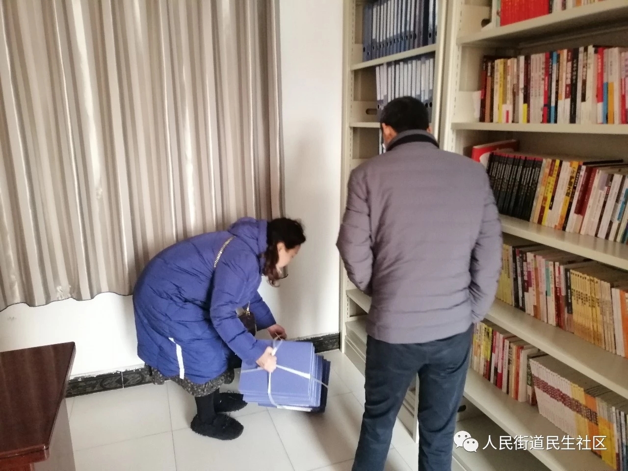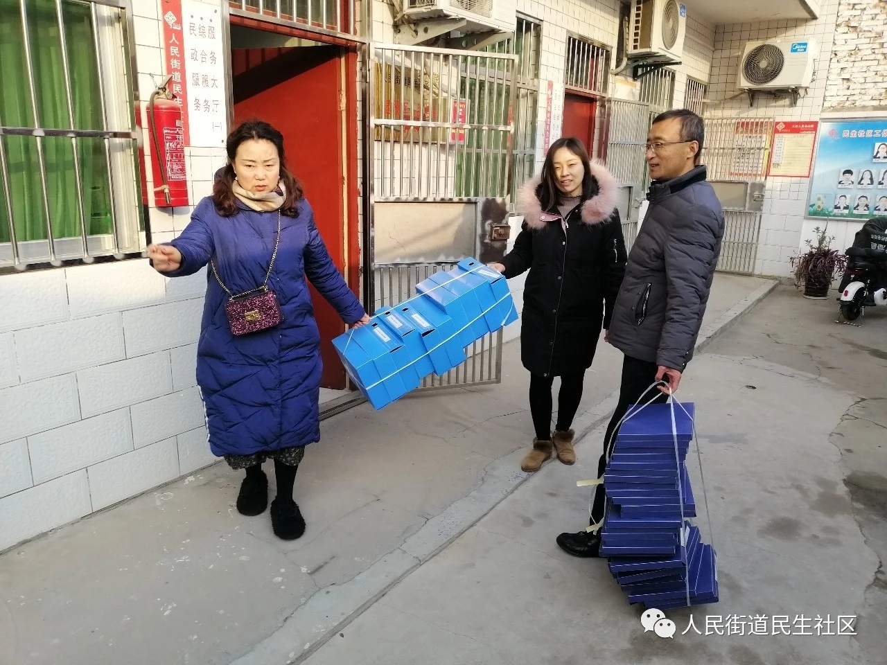 区编办党员志愿者为支持社区建设和提升办公效率,为社区捐赠文件盒30个。