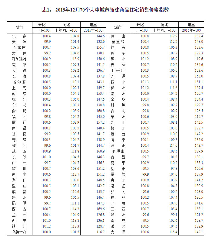 国家统计局今日发布了2019年12月份70个大中城市商品住宅销售价格变动情况统计数据。对此,国家统计局城市司首席统计师孔鹏进行了解读。