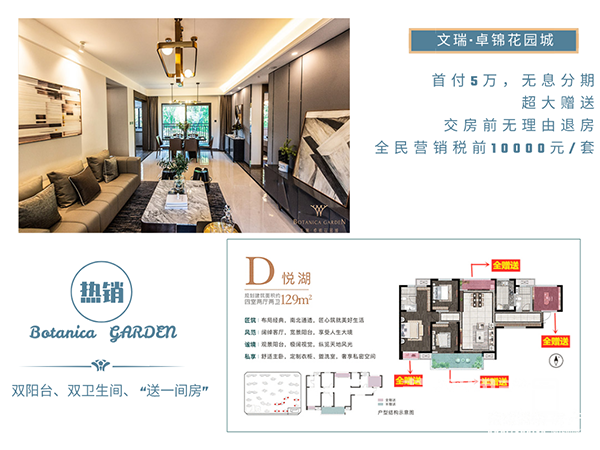建面约110-130㎡港风精装花园美宅 首付5万可分期 全民营销税前10000元/套 火爆热销中