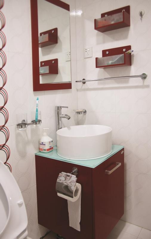 业主是一对年轻的高级白领,喜欢简约、明快的居住空间,比较喜欢红色。女主人的眼光很不错,对空间的想象也比较灵通。所以,沟通起来很顺利:)因此,设计师在用色上主要以大胆的酒红色、白色、卡其色为主色调。配上方圆结合的造型!