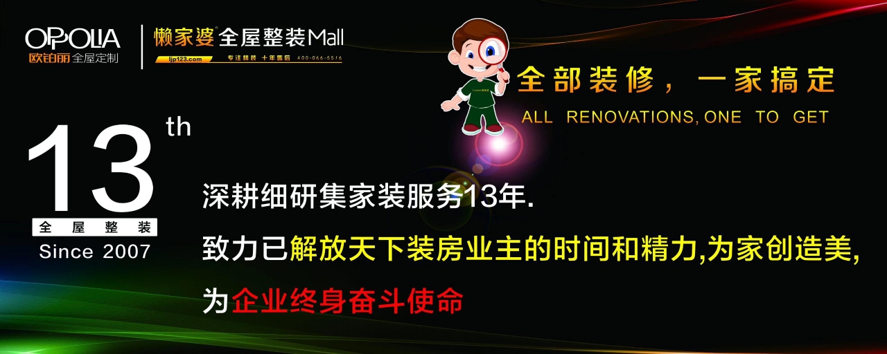 懒家婆全屋整装Mall,深耕细研家装服务业14年,致力以解放天下装房业主的时间与精力,为家创造美,为公司终身奋斗使命。