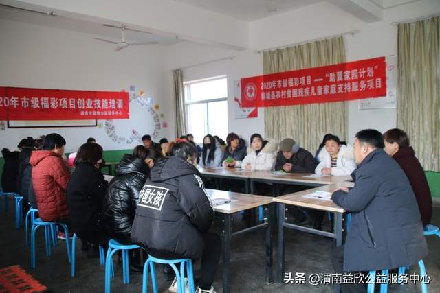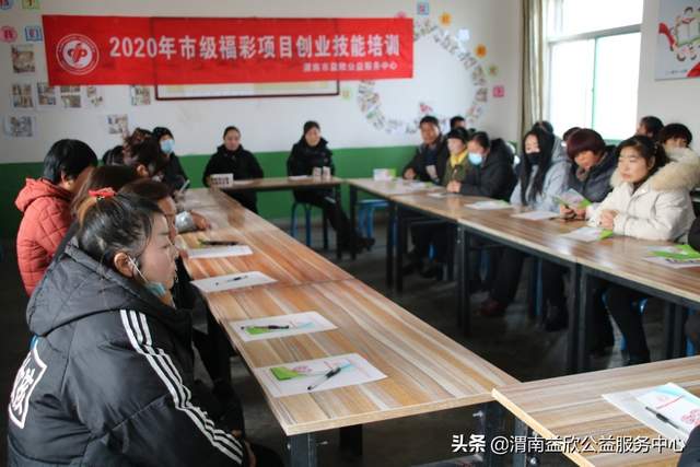 12月25日,渭南市益欣公益服务中心在蒲城县宜安村对有创业要求和培训愿望的,具备一定创业条件的残疾家庭成员开展了第一期创业培训,共20名残疾家庭成员参会。