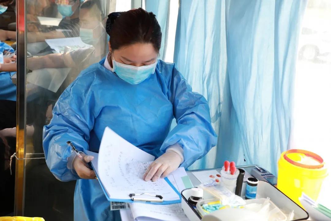 图为:医务人员登记 图片来源:渭南高新区融媒体中心