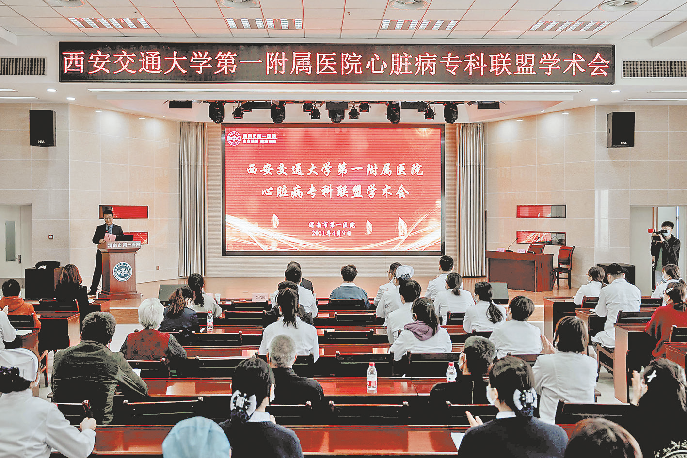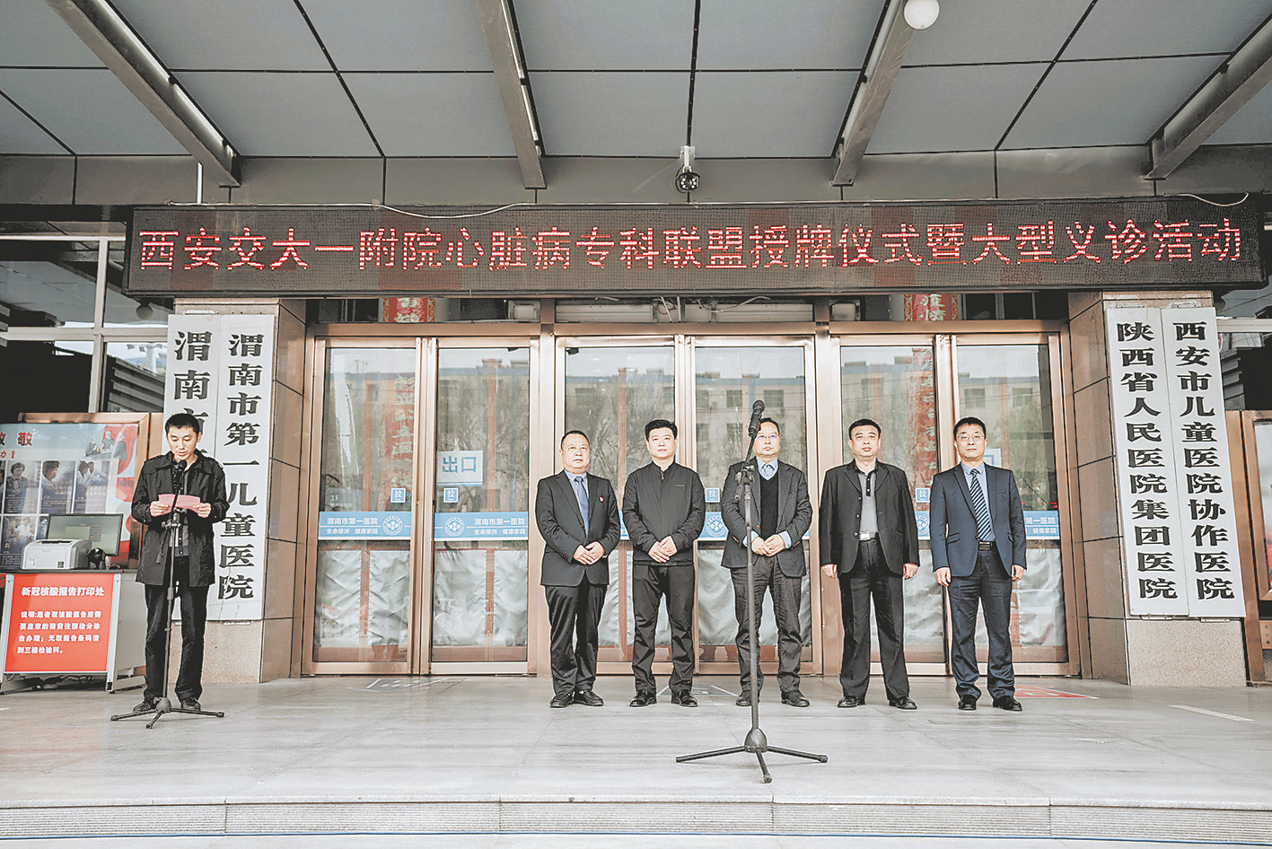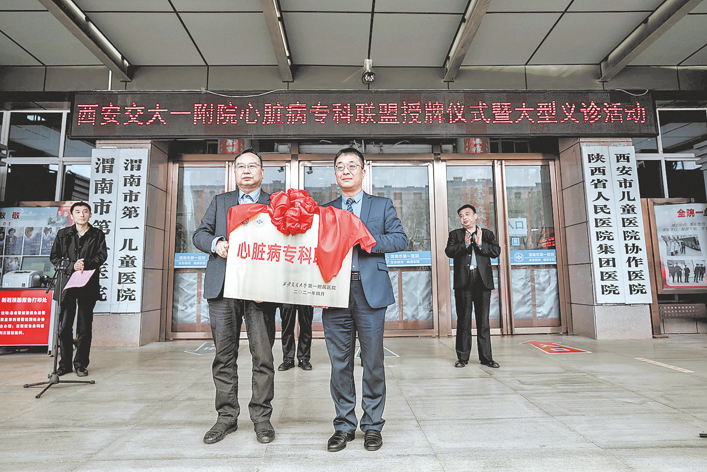 强强联合促发展,合作共赢创品牌。4月9日,渭南市第一医院与西安交通大学第一附属医院心血管病医院心脏病专科联盟授牌仪式举行。  授牌仪式 市第一医院党委书记冯晓峰在致辞中表示,多年来,医院始终以公立医院改革为指导,以创建三级医院为目标,不断强化医院内涵建设,诊治水平和综合服务能力得到不断提升,推动医院可持续发展。2018年,集全院之力,推进心脏中心学科建设,先后购买最先进的飞利浦FD20数字减影机等设备,建成一流标准化的导管室,抽调优秀医护人员组建心脏中心团队,做大做强心脏中心。联盟建立后,希望借助西安交通大学第一附属医院一流的医疗技术和专家团队,有力地促进市第一医院心血管病诊疗技术和服务水平的整体提升,全力打造市第一医院心脏中心,为广大人民群众的健康保驾护航。  随后,西安交通大学第一附属医院心血管病医院副院长、结构性心脏病科主任张玉顺为市第一医院授牌。 临渭区副区长李少博在讲话中表示,近年来,区委、区政府把发展医疗卫生事业作为重要的民生工程来抓,全区卫生健康事业实现加速发展和高质量提升。市第一医院通过不懈努力,在设施建设、机制改革、规范管理等方面取得优异成绩。希望医院以此次授牌为契机,在西安交通大学第一附属医院的帮扶指导和支持下,进一步抢抓机遇,充分利用张玉顺及其团队优质的医疗资源和诊治水平,加快自身建设步伐,促使学科建设、医疗水平、服务能力等方面得到全面提升,护航百姓健康。希望省级专家把高超的医术和先进的管理理念送到基层,使群众享受到医改带来的实惠。  市第一医院医务人员参加授牌仪式 市卫健委党组成员、副主任徐萌新指出,市卫健委历来高度重视医学联盟建设,将专科联盟建设作为改善医疗服务、优化服务流程、整合医疗资源的一项重要举措。此次专科联盟的成立,为加强区域互动沟通、提升区域学术水平搭建了一个高端平台,也为全市心脑血管专业医护人员提供了一个宝贵的学习机会,对优化医疗资源配置、提升医疗技术水平、提高医疗服务质效具有十分重要的现实意义。市第一医院要充分利用省级专家团队优势,不断深化合作,在创新中求发展、在结合上做文章、在实效上下功夫,不断提升医疗技术水平。希望专家团队能把新理念、新技术送到渭南,促进全市医疗技术和服务水平整体提升,让群众在“家门口”就能享受到三级医院优质的医疗服务。  义诊暖人心 授牌仪式结束后,省级专家与市第一医院医务人员在门诊楼前联合为广大群众义诊。“我心脏有点不舒服,听说今天省城专家来市第一医院义诊,我便早早过来排队。”70多岁的李大爷一大早便等候在此,省级专家认真地为李大爷检查、诊断,并提出日常预防、保健及治疗建议。 学术交流环节,省级专家以《心内科医生眼中的脑卒中》《基层医院肺栓塞的识别与防治》为题,引经据典,运用通俗易懂的语言进行讲解。参训人员认真聆听、详细记录,现场学术氛围浓厚。  学术交流 据了解,下一步,在张玉顺及其专家团队的带领下,市第一医院将不断规范心血管疾病患者管理,促进双向转诊,制定同质化诊疗服务流程,推广新技术,推动学科建设、人才建设,提升综合服务能力,努力为辖区群众提供更优质的医疗服务,以优异成绩庆祝中国共产党成立100周年。