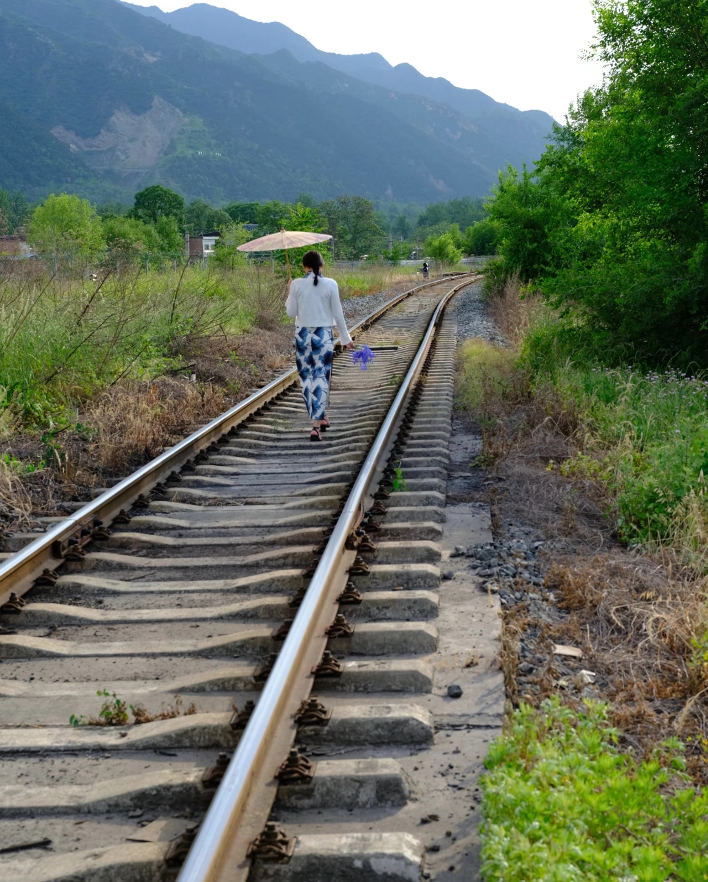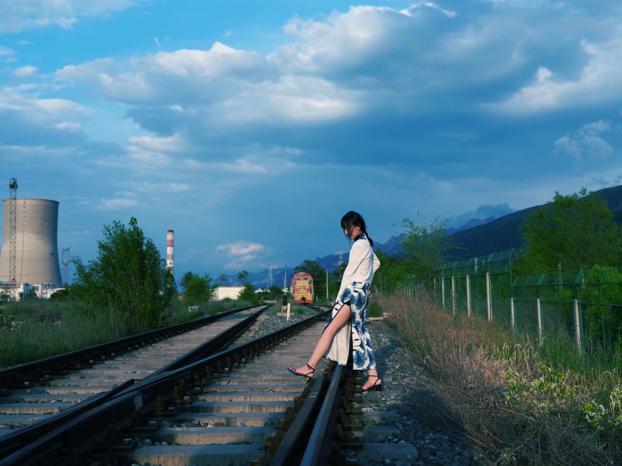 [人物写真] 摄于罗敷铁路▏轨道与美人相融合,仿佛跨越时空,到达了另一个彼岸