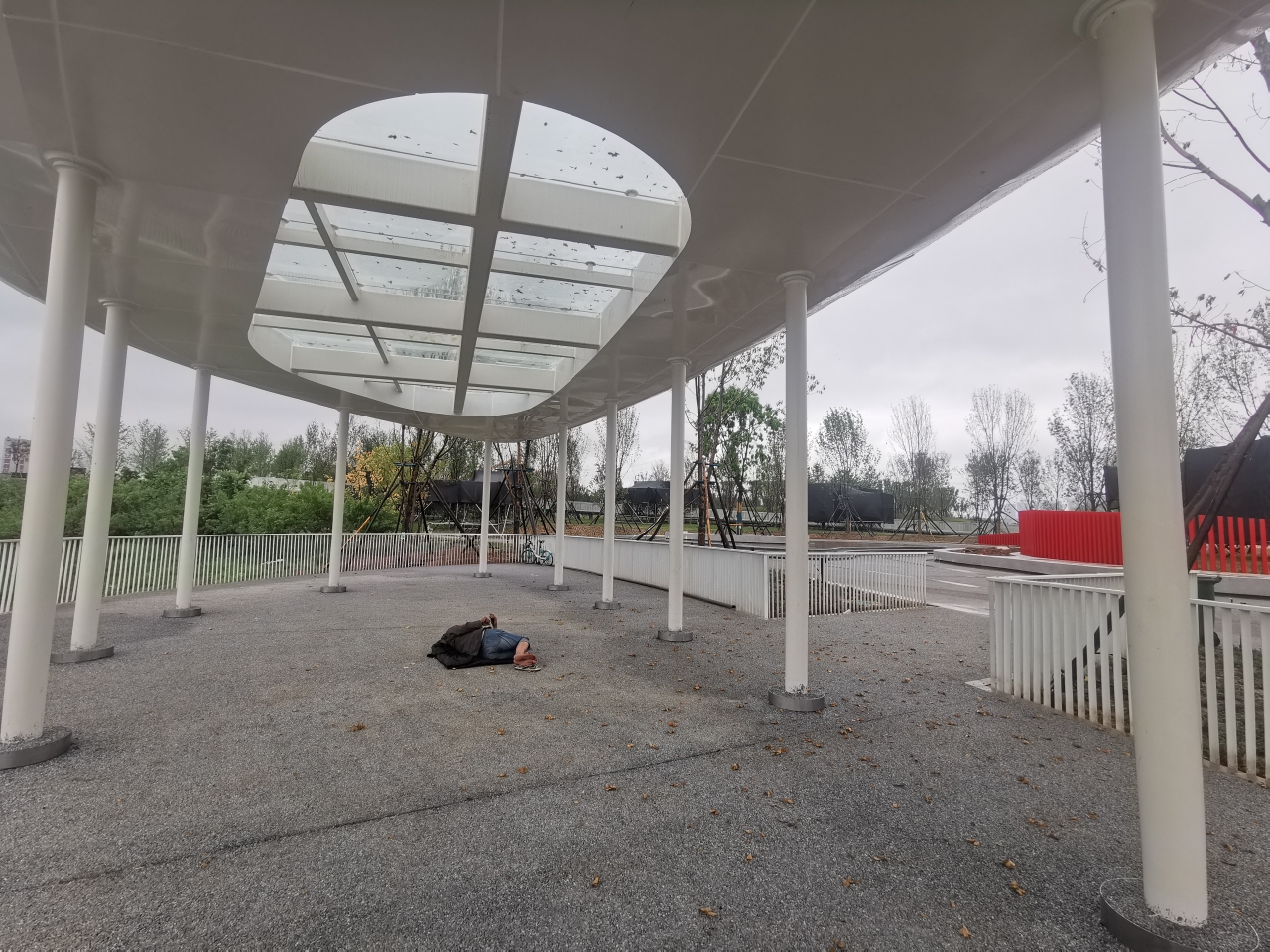 然后又被迫在驿站躲雨,虽然这个人行桥距香槐六路的双层灞河大桥也没多远。