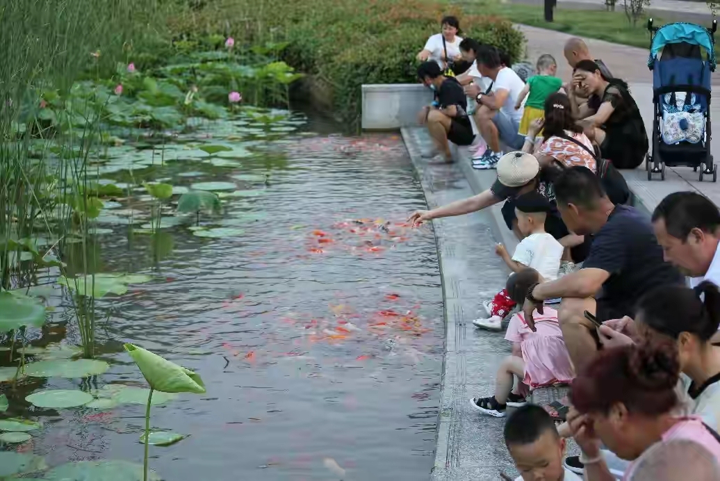 [多彩风光] 快看!渭南市人民公园内,荷花争相开放,围观的人不少...