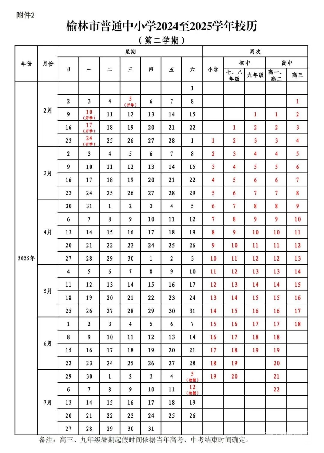 春节:1月28日(农历除夕、周二)至2月4日(农历正月初七、周二)放假调休,共8天。1月26日(周日)、2月8日(周六)上班。清明节:4月4日(周五)至6日(周日)放假,共3天。劳动节:5月1日(周四)至5日(周一)放假调休,共5天。4月27日(周日)上班。端午节:5月31日(周六)至6月2日(周一)放假,共3天。国庆节、中秋节:10月1日(周三)至8日(周三)放假调休,共8天。9月28日(周日)、10月11日(周六)上班。 来源:中国政府网 人民日报 西安市教育局 榆林市教育局 咸阳教育 文化延安