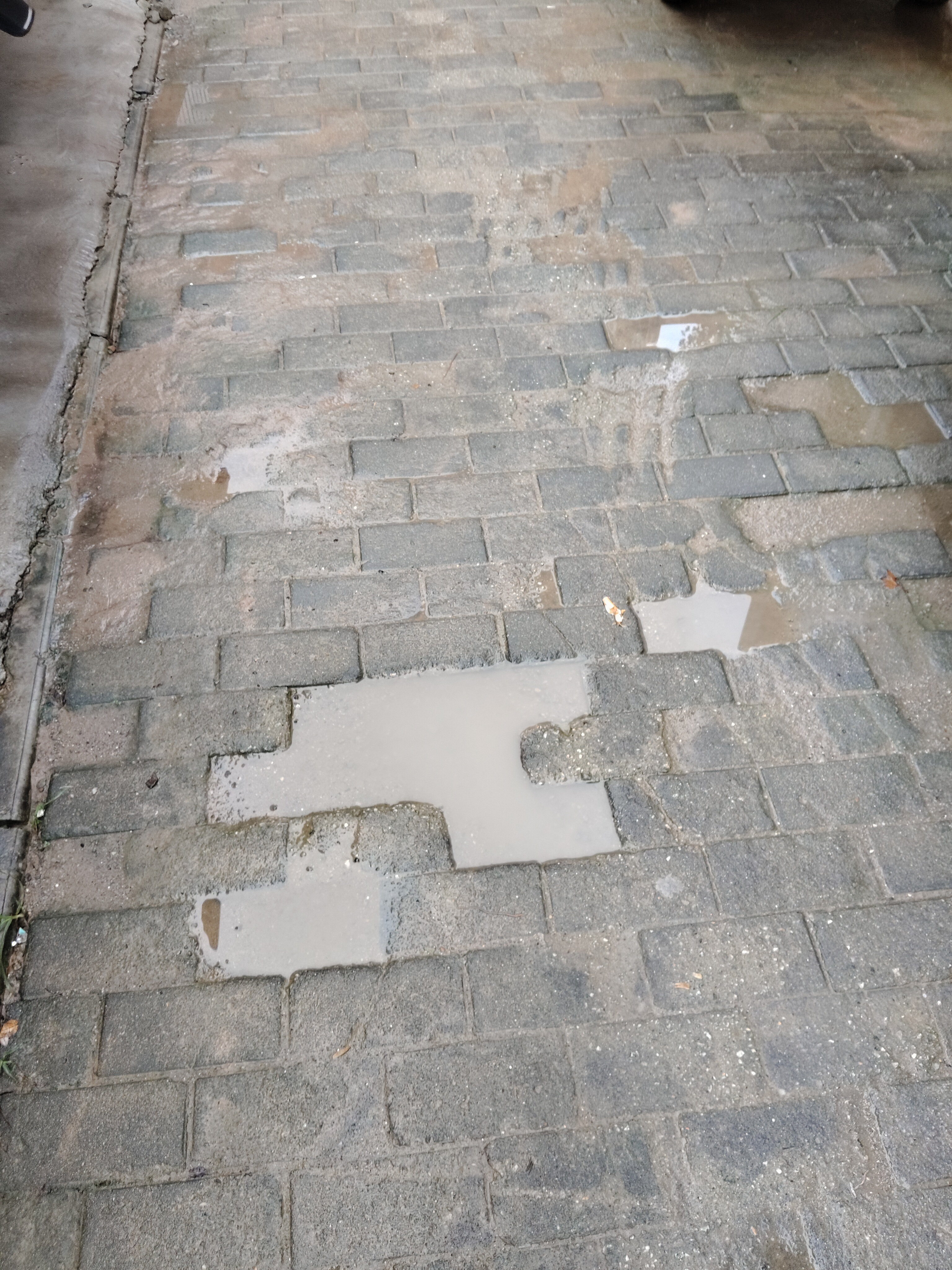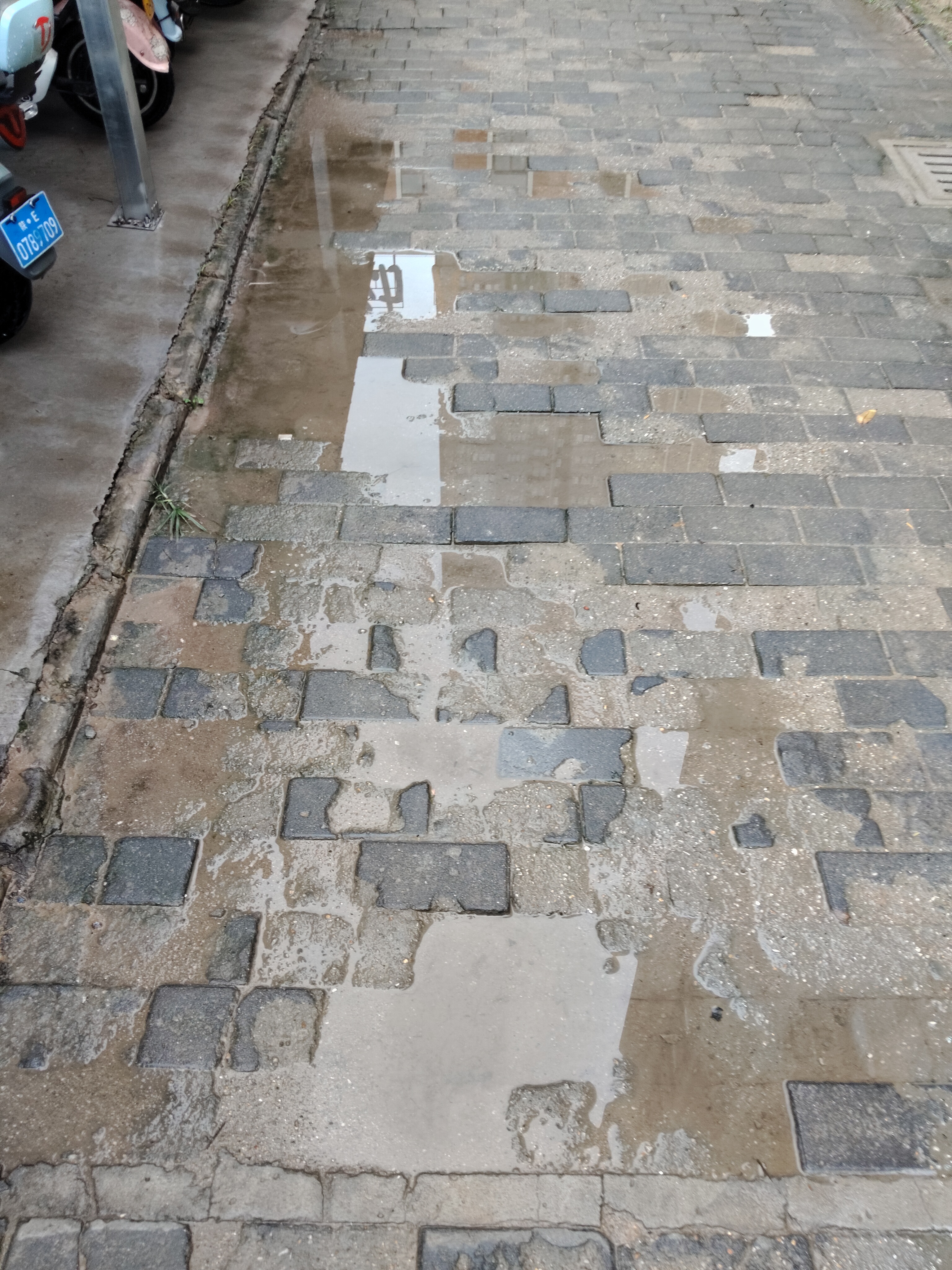 这是东城苑小区17号楼下的路,坑坑洼洼,长期没人维修整天收这费那费,一下雨大量积水严重,无法行走,大多数老年人行走不便,甚至还有摔倒的,残疾人轮椅掉进坑里出不来,物业不管不问,希望有关部门给予解决,谢谢