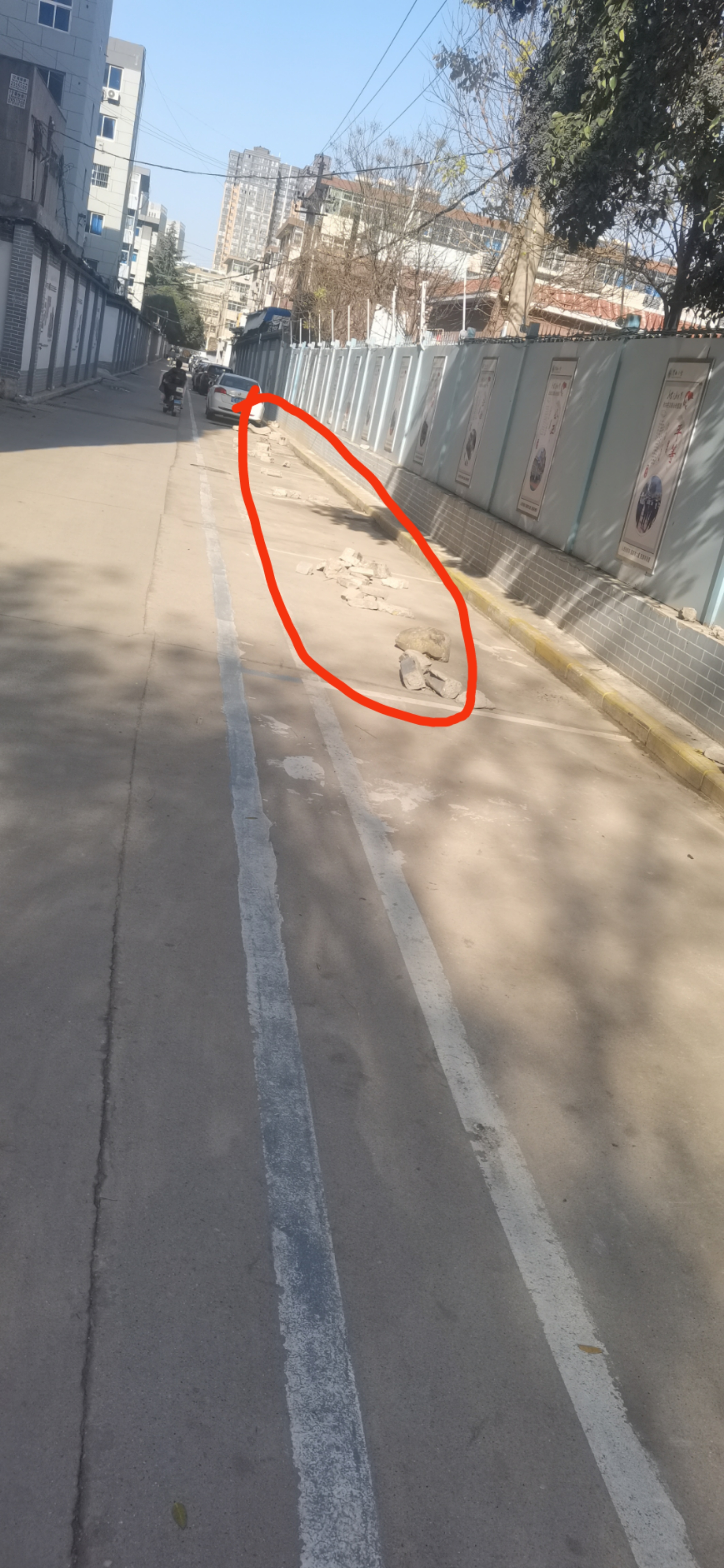 渭南小学西边路上的停车位放满了石头,影响停车又不安全!