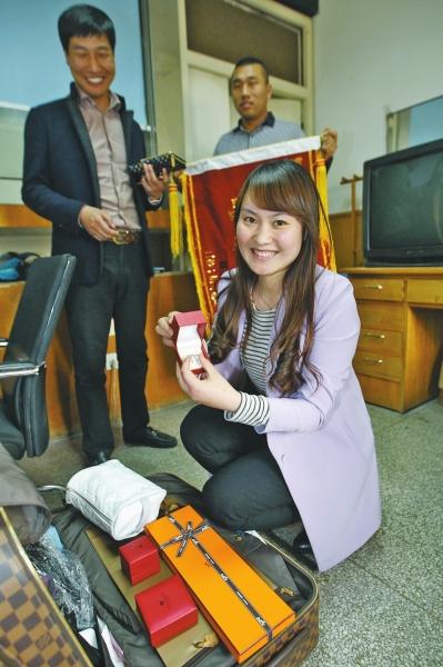 箱包里的东西一件不少,苦恼了几天的小郭终于笑了。 □记者张波文许俊文摄影 核心提示|5万多元买的“LV”箱包内,装着订婚用的钻戒、项链等首饰。驻马店女子小郭,在郑州花费数万元购买结婚用品后,却不慎将箱包遗失在了出租车上,遍寻未果。因警方没有立案,4天后,她和男友在郑州沿着当时的乘车路线寻找线索。 忙活一整天,查看十余家店铺的监控后,他们终于在一段视频中找到了突破口——反复研究后,先后确定了出租车车型、所属公司以及车牌上的个别数字和字母。根据小郭男友提供的线索,昨日,郑州市客运管理处很快联系上了车主。当天上午,车主委托他人将包送到了客运管理处。 女孩急哭了:价值10余万的东西丢在出租车上了 小郭是驻马店泌阳县人。4月12日,她在郑州花费3万多元,购买了钻戒、项链、耳环等首饰,此外,还花两万多元购买了衣服、化妆品等。小郭说,之所以如此“血拼”,是因为两天后,她要和男友回老家定亲,首饰等物件当然不能缺少。 12日中午,她在金水东路与黄河南路交叉口,搭乘了一辆出租车。小郭讲,她按司机的要求,将自己带的一个箱包放到了后备厢中。箱包是她在国外购买的“LV”品牌包,价值不菲,购买时花费5万多元,里面除了装着首饰、衣物等,还有购房合同、收条等重要物件。 很快,出租车来到目的地,东风南路一居民小区。小郭下车走进小区门口后,突然意识到,箱包丢在出租车上了!当她扭头跑回去时,出租车早已离开了。 “我当时既没有要发票,也没有记着车牌号。”小郭当时都急哭了,因为箱包和里面的物品价值十余万,还装着购房合同等,实在太重要了。她随即拨打了110报警。小郭说,110民警很快赶来,但民警告诉她,警方无法立案侦查,最多只能协助寻找。无奈之下,她又向多家广播电台求助,但几天来依然未果。 对此,天之权律师事务所郑州分所的张少春律师表示,箱包是小郭自己不慎遗失的,捡到者并没有盗窃、抢劫等犯罪行为,遇到类似情况,警方往往会做遗失物品登记,不予立案的做法符合规定。 男友出马了:曾经的侦察兵查监控锁定目标 小郭的男朋友边先生说,当得知女友在郑州遗失物品后,因为要在4月14日订婚,他只能宽慰女友,让女友先赶回泌阳县,把寻找箱包的事情放一放。瞒着双方家长,二人又在当地购买了项链等首饰,这才顺利地完成了订婚。 订婚结束后,曾在部队当过侦察兵的边先生决定,自己寻找线索找箱包。由于小郭当天乘车时,正好给边先生打过一次电话,二人确定小郭的乘车时间为12日中午12时17分。4月15日晚,他和女友来到郑州,第二天一早,二人从金水东路与黄河南路交叉口出发,沿着小郭当天的乘车路线寻找线索。 边先生打算从沿街门店的监控中找突破口。几公里的路段中,二人走访了数十家店铺。这当中,有人明确拒绝提供,也有人答应帮忙。边先生说,可能是二人寻物的诚意感动了别人,有10余家商铺愿意提供监控录像,然而,这些存有海量信息的录像,不是清晰度不够,就是没有拍到当事出租车的线索。 边先生还没有放弃,4月16日晚6时许,他终于在一家单位的监控中找到了突破点。虽然图像依旧不够清晰,但边先生还是通过计算时间,以及辨认副驾驶位女乘客的发型、脸型后,最终确定,这就是小郭当时乘坐的出租车。 边先生用自己的手机翻拍了这一段视频。记者看到,这段视频很短,也不太清楚,出租车在视频中一闪而过,只能模糊看到该出租车号牌的个别数字。而郑州市有着上万辆出租车,如果只靠号牌上的个别数字寻找,这无异于大海捞针。 边先生开始反复研究这段视频。在发现该出租车右侧门上有4个字后,他判断,这应当是出租车所属的公司名称。仔细辨认视频后他确定,这家公司的名称当中带有一个“一”字。经查询,边先生认为,这应当是归属河南万通一汽出租汽车有限公司。此外,他辨认出该车车型为丰田花冠,其号牌的尾数为9,且带有一个字母F。 车主现身了:是白班司机所捡,已委托他人送还箱包 昨日上午9时,边先生联系了郑州市客运管理处。根据边先生提供的线索和信息,客运管理处很快回复:已经联系上了该车车主刘某,该车确实归属河南万通一汽出租汽车有限公司,箱包当时就遗失在这辆车上。 郑州市客运管理处信访投诉科工作人员张冀表示,郑州一共有10608辆出租车,48家出租车公司。由于边先生提供了出租车公司的名称,提供的有相关车牌信息,他们很快就联系上了该车车主刘某。刘某告诉他,该车平时有3个人在开,不确定是否捡到东西。随后,刘某回复说,白班司机确实捡到一个箱包,会立刻委托他人专门送来。 上午11时30分,边先生和女友来到客运管理处,并向已在此等候的刘某朋友陈先生、客运管理处方面分别赠送锦旗致谢。当打开箱包发现东西一件不少时,小郭高兴地笑出了声。 昨日下午,车主刘某在电话中告诉记者,在接到运管处电话后,他询问了白班司机,白班司机告诉他,确实有捡包一事,但该司机解释说,他这几天回周口老家了,一直没来得及处理此事。 刘某坦言,他个人感觉白班司机的做法不太妥当,在捡到箱包的第一时间,司机就应当通知运管处,寻找失主,不能因为回老家耽搁此事。边先生和女友都表示,他们还是很感谢对方能将物品归还。 张少春律师表示,拾金不昧是我国的优良传统,公民拾到遗失物品后,应该返还失主或者送交公安部门。从民法角度来