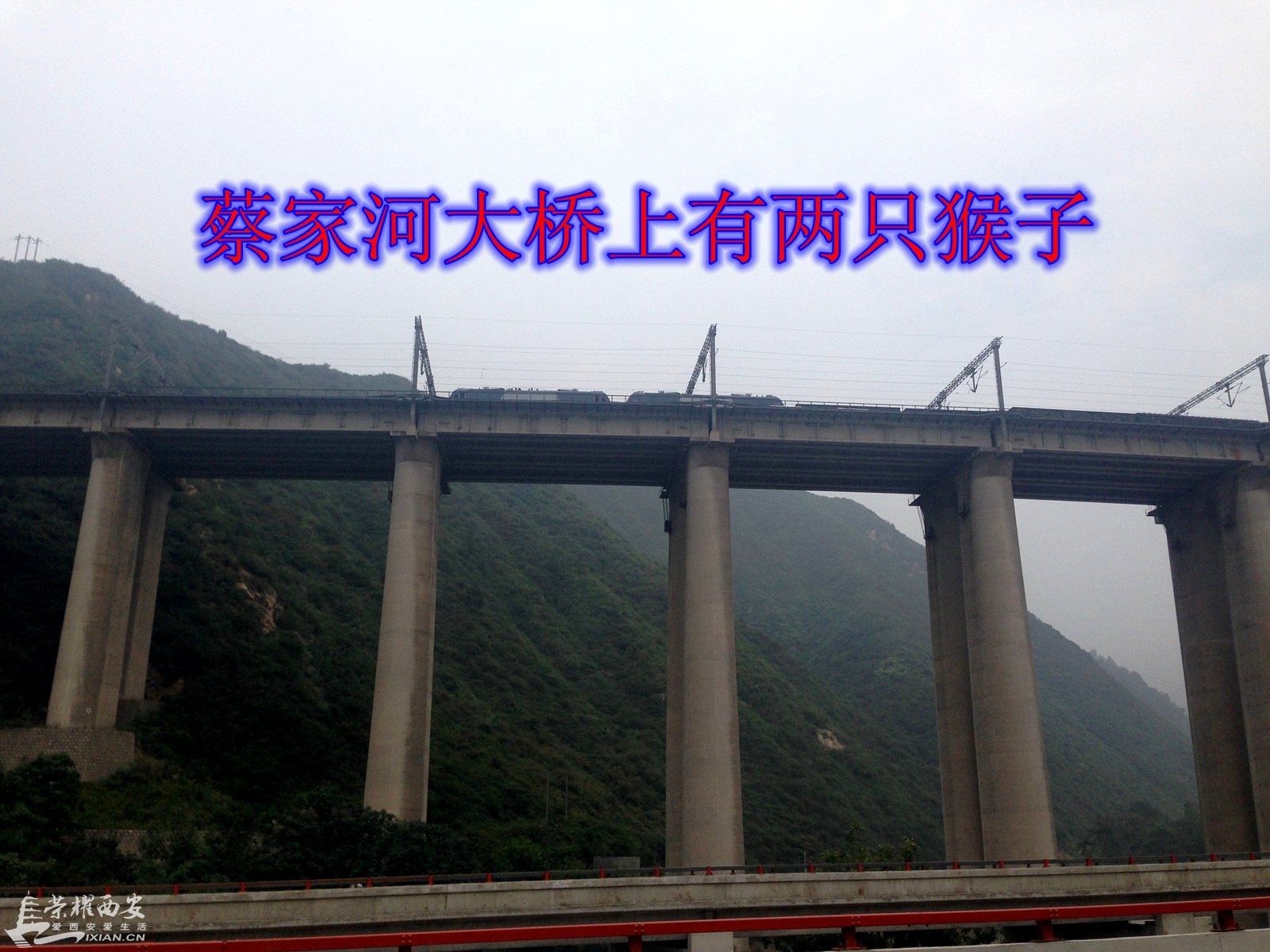 蔡家河大桥上有两只猴子