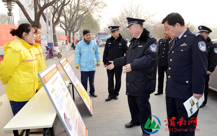 渭南市反恐办副主任、市公安局党委副书记徐印祖一行先后来到渭南市、高新区反恐办宣传点,检查指导反恐宣传工作。记者 许艾学 摄