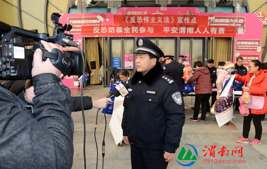 核心提示: 为提升人民群众反恐防恐意识和应对恐怖袭击事件的能力,进一步深化反恐人民战争,12月28日上午,在《中华人民共和国反恐怖主义法》颁布两周年之际,渭南市反恐办统一部署,联合渭南市公安局、市教育局、市工信局等20多家成员单位在全市范围内开展《反恐法》宣传周活动。渭南市反恐办副主任、市公安局党委副书记徐印祖一行先后来到渭南市、高新区反恐办宣传点,检查指导反恐宣传工作,向群众普及反恐知识,共建平安渭南。