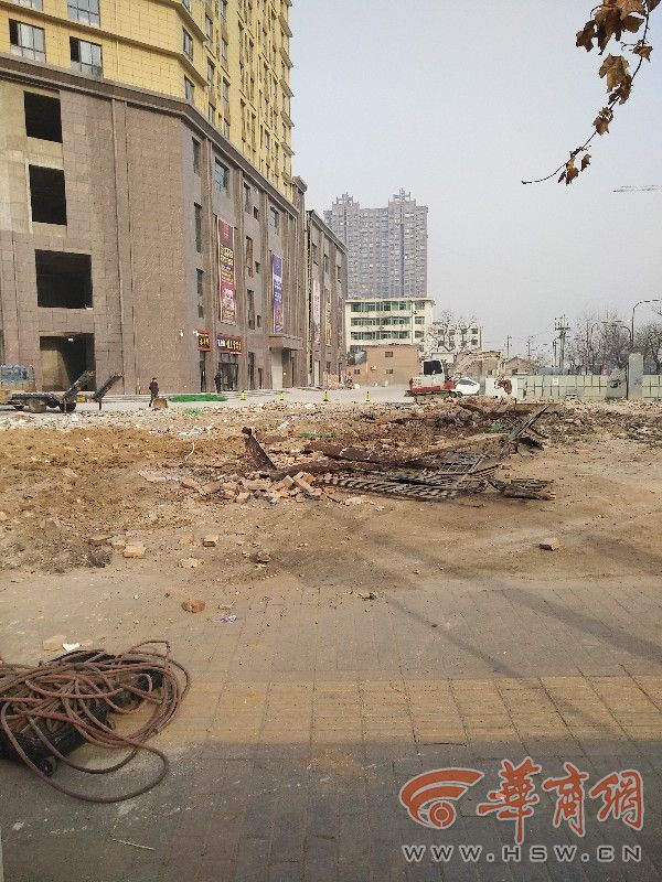 “我去年12月30日晚8点左右下班,当时房子也没有发现异常,也没见施工机械,但31日早晨却发现房子不见了,房子里边还有价值13000多元的货也一同‘消失’,去街道办却被告知损失要找房东要。”租赁董建华家房子的租户刘女士说。 市民闫金谋与董建华有着同样遭遇,“房子我住了65年,离董建华家的房子不远,去年12月31日凌晨我家两层房屋也被拆,有6间房100多平米, 没签补偿协议,去找人民街道办,对方告知会尽快和开发商协商赔偿事宜。” 1月1日上午,华商报记者来到了位于人民街东口正在建设的广青甲天下楼盘,在楼下可以看到董建华家房屋原址上覆盖着绿色防尘网,网下有混凝土砖块,看不出原房屋任何痕迹。不远处有机械正在施工,董金平说那是闫金谋房屋原址。