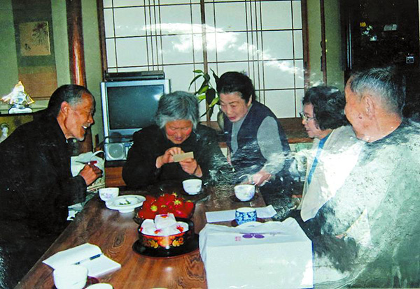 王玉兰(左二)和老伴李明堂(左一)2006年去日本探亲,左三为其表姐。 资料图