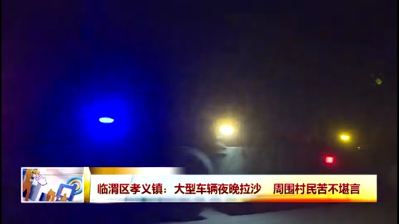晚上8点钟,记者顺着这条通往临渭区孝义镇的道路上驶过,这里的路面显得坑坑洼洼,路面上不时能看到一些散落的沙子。行驶了大约30分钟,记者来到孝义镇,记者发现在距离镇中心东北方向大约3公里的一片空地上,灯火通明,数10辆大型卡车聚集在路边,占据了一半路面,走近一看发现有一台装载机正在给大型卡车装沙子。